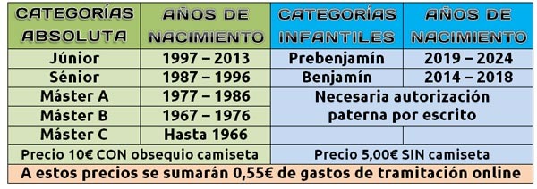 CATEGORÍAS - XII CARRERA LA CORDOBARIA NAVIDAD 2025
